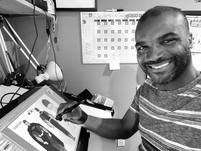 His professional work includes graphic novels (“Gideon’s Journey”), comics (“Dr-Vigilante: Last Stand for a New Life”), comic strips (“Black Kids Play Baseball”), webtoons, illustrations, concept art, graphic design, and fashion illustrations.