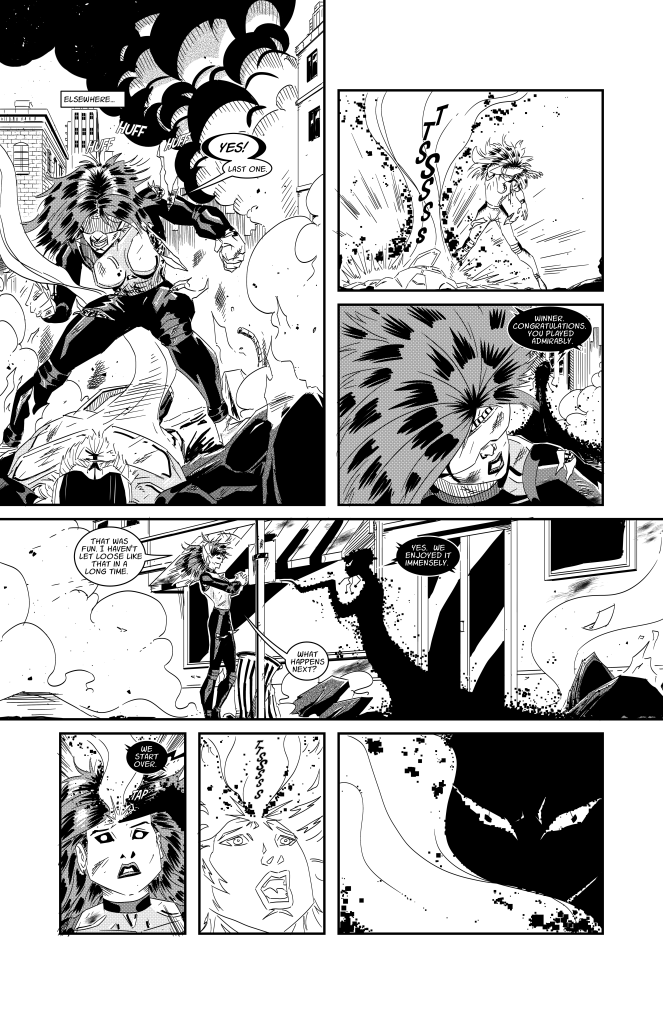 Below is a sample page from my comic script for “Game Changers”. “Game Changers” is a personal project I am developing. I have also included the corresponding page of artwork.